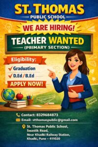 St. Thomas Public School is inviting applications for the position of Primary Section Teacher.